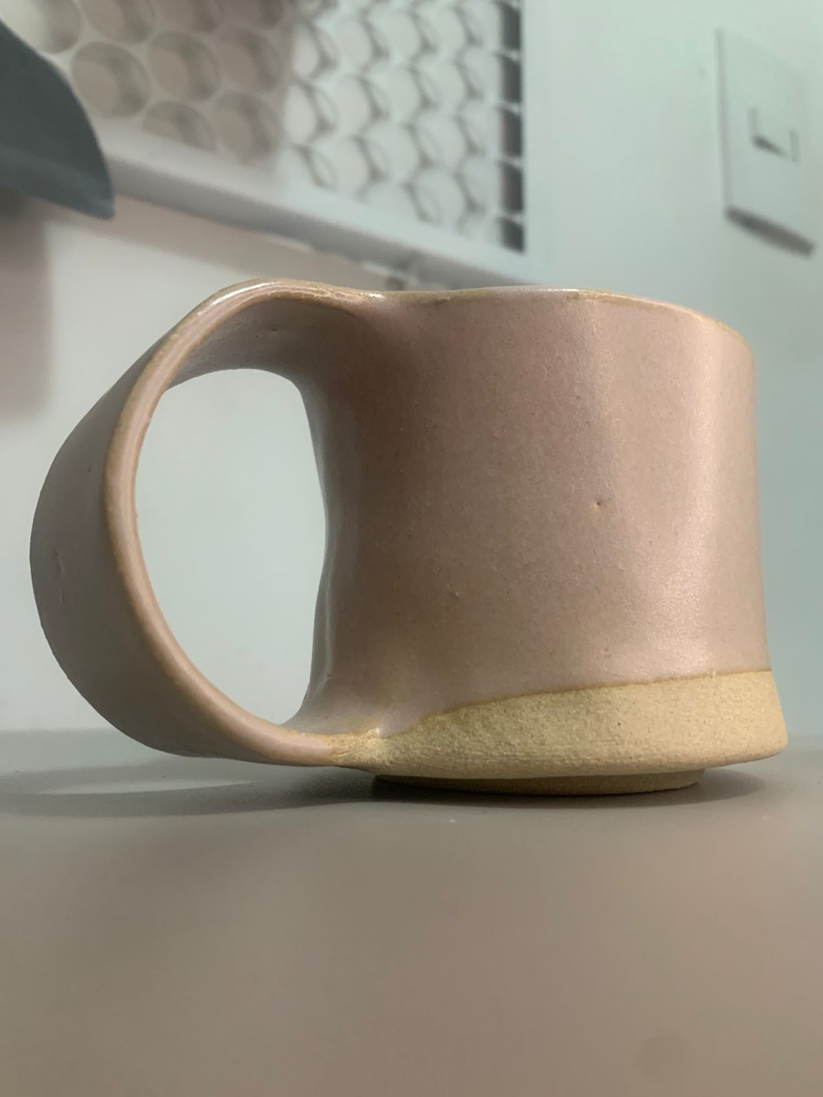 Caneca modelada a mão. Argila Baunilha. Esmalte Champanhe.